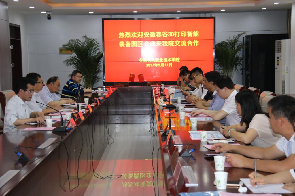 2017年5月11日,伟德国际1946源自英国与安徽春谷3D打印智能装备产业技术研究院校企合作洽谈会暨签约仪式在伟德国际1946源自英国综合楼306会议室顺利举行。