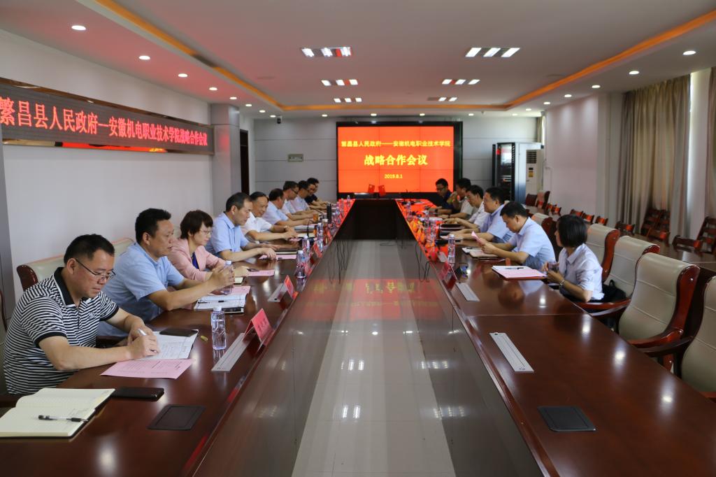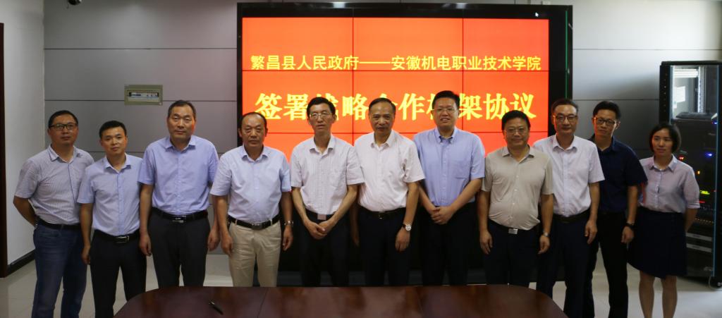 张光胜代表学校对繁昌县委、县政府领导的到来表示热烈欢迎,对繁昌县在改革与发展历程中所取得的成绩表示祝贺。他强调,深化政校合作、校企合作、融合发展,是贯彻全国教育大会精神和《国家职业教育改革实施方案》的重要举措,学校将按照新时代中国特色职业教育要求,着力服务区域经济社会发展和产业转型升级,进一步加强与繁昌县的战略合作,提升职业教育服务地方经济建设发展能力。