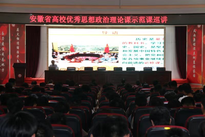 为持续深入学习习近平总书记在学校思想政治理论课教师座谈会上的重要讲话精神,高质量办好高校思想政治理论课,用习近平新时代中国特色社会主义思想铸魂育人,努力培养担当民族复兴大任的时代新人,培养德智体美劳全面发展的社会主义建设者和接班人,根据《安徽省教育厅办公室关于开展全省高校优秀思想政治理论课示范课巡讲活动的通知》的要求,9月24日下午,安徽省高校优秀思想政治理论课示范课巡讲团成员、安徽师范大学马克思主义学院院长、博士生导师高正礼教授应邀在伟德官网综合楼一楼报告厅开讲优秀思想政治理论课示范课,马克思主义学院全体专兼职教师、部分学生代表计300余人聆听了示范课。