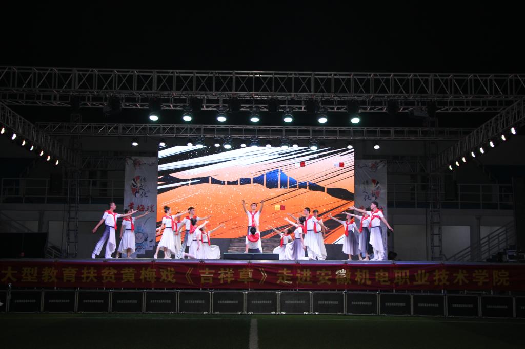 为深入推进“不忘初心、牢记使命”主题教育,9月26日晚,在新生入学之际,为了以学生喜闻乐见的形式加强大学生思想政治教育工作,大型教育扶贫黄梅戏《吉祥草》走进伟德国际1946源自英国为2019级新生呈现了一场弘扬主旋律、传播正能量的扶贫大戏。校党委书记张光胜、党委副书记刘艺出席演出现场,学生工作部、保卫处、纪委办公室、团委等部门同志及各二级学院党总支书记、分团委书记和新生辅导员与2000余名学生到场观看演出。