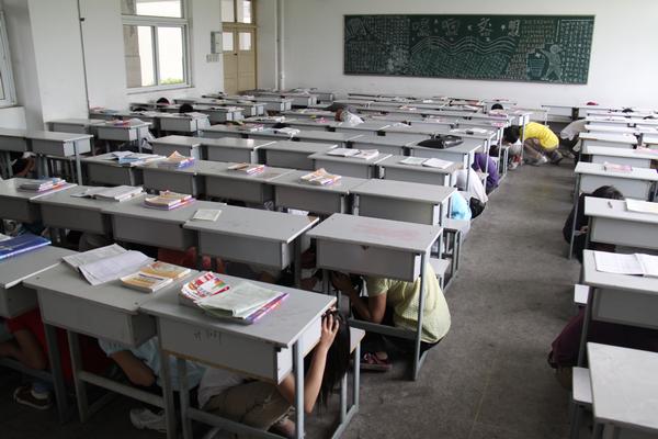 中午12点30分,一声震耳的警报声长鸣,广播响起:“地震应急疏散演练开始,现在地震来袭,紧急避震”,安全疏导员立即组织宿舍内学生就地抱头、闭眼,躲在各自的床下或桌子下,尽量蜷曲身体,降低身体重心,并尽可能地用物品保护头部。第一波地震平静,指挥部发出紧急撤离指令,学生在辅导员、班主任组织下有序迅速从楼梯向下撤离,并按照预定的疏散路线迅速撤离到指定地点集结,清点人数。12点33分46秒,958名学生和60多名教师全部从不同区域安全撤离到了空旷地区。