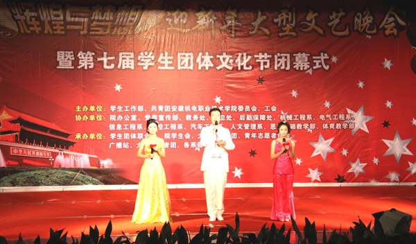 12月29日晚,学院大礼堂张灯结彩,人声鼎沸,处处洋溢着节日的喜庆气氛,由院学生工作部、团委、工会共同主办的“辉煌与梦想”迎新年大型文艺晚会暨第七届学生团体文化节闭幕式在这里隆重举行。院长亓四华、院党委副书记刘艺、院党委委员教务处长郑晓峰、院党委委员、组织人事处处长朱周义、相关职能部门负责人、各系部党总支书记及近1300名师生共同观看了演出。