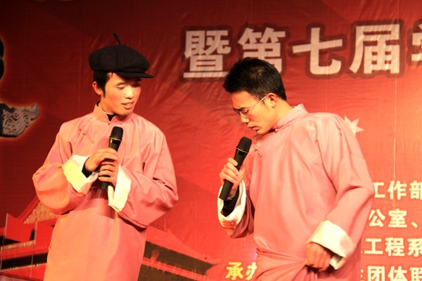 晚会在院党委副书记刘艺热情洋溢的新年致辞后正式开始。晚会节目内容丰富,形式多样,高潮迭起,精彩纷呈。19:00整,独特新颖的舞蹈《誓言》把观众带入如诗如画的境地,也由此拉开了晚会的序幕。奔放、欢快的舞蹈《娱乐联播》、激情昂扬的独唱《找自己》、校园十佳歌手带来的健康、阳光、清新、大方的《歌曲串烧》、动感十足的现代舞《跃动的木偶》各具亮点,颇具专业水准;相声表演《祝您健康》、《双簧表演》、话剧《荆轲刺秦王(现代版)》台词风趣幽默,构思新颖,舞台表演诙谐滑稽,逗得观众捧腹大笑;藏族舞表演《幸福香巴拉》、印度舞表演《天竺少女》舞姿婀娜优美,热情奔放;青春亮丽的《模特秀表演》品味高雅,青春澎湃;手语表演《感恩的心》让大家感受到了爱的力量,节目催人奋进,感人至深。