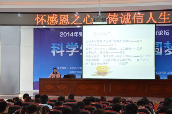 此次报告会,进一步加强了我院学生的文明诚信和感恩教育,进一步坚定了青年学生的理想信念,激励我院学生树立讲文明诚信、懂感恩立德的人生观,以积极进取的精神面貌和蓬勃的青春朝气迎接未来挑战。