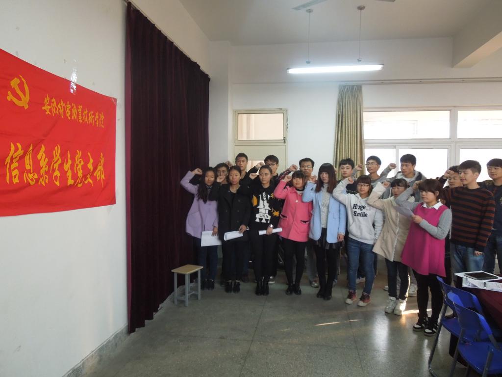 为进一步做好学生党员发展和培养工作,加强学生党员的党性修养,近日,信息系学生党支部在系会议室召开全体学生党员会议暨入党宣誓仪式,会议由系学生党支部书记闫海玲主持,系党总支秘书王先、各位入党介绍人及全体学生党员参加会议。