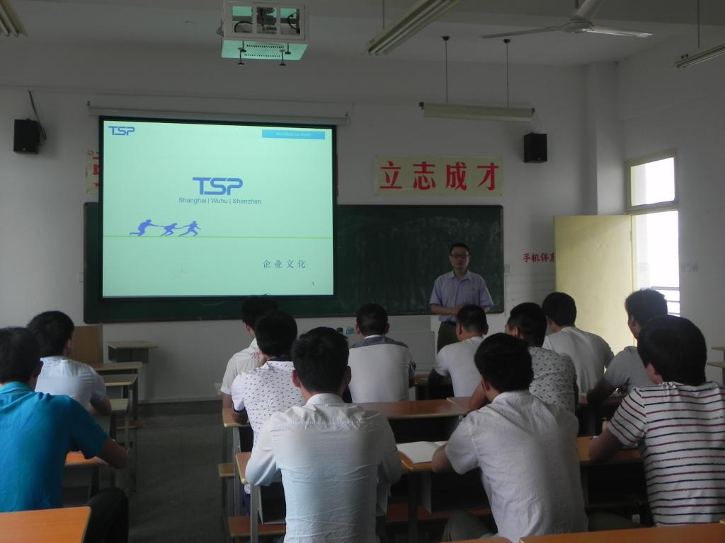 上午,安徽天思朴超精密模具股份有限公司培训部经理董途在学院1308教室为该班学生作了企业文化和行业发展的精彩报告。下午,他在校企共建的“天思朴研磨实训室”为学生介绍实践教学安排,示范操作设备并与学生进行互动。