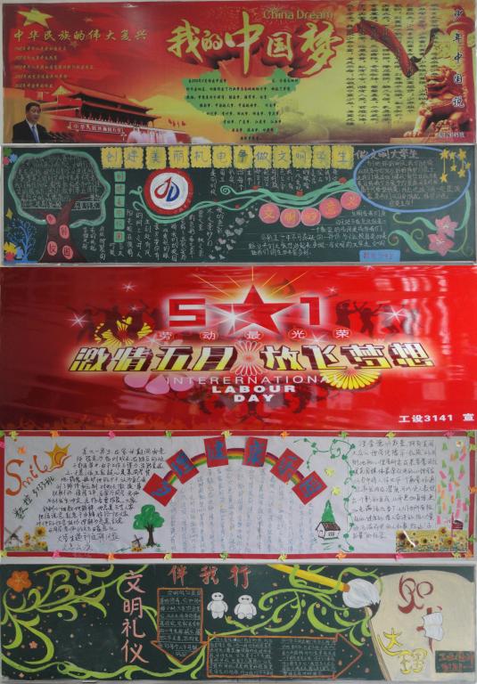 此次活动旨在培养学生的动手能力与创新意识,丰富同学们的文化生活,增强同学们的集体荣誉感,充分发挥黑板报的文化阵地作用,拓宽系部大学生思想政治教育渠道,深化学院德育教育内容。本次板报设计活动,激发了学生浓浓的爱校情怀,同学们结合个人实际,投入“中国梦”的实践活动之中。(发稿/图片:徐园园 审核:王刚/王蓉)