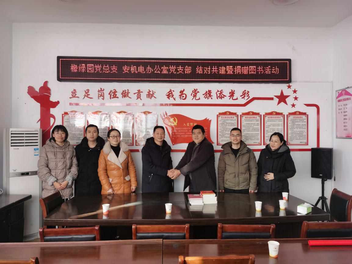 12月25日下午,在支部书记王冬冬的带领下,办公室党员代表、办公室指导的社团“雨耕文学社”学生代表一行人来到了澛港街道橡绿园社区开展结对共建暨志愿服务及图书捐赠活动。