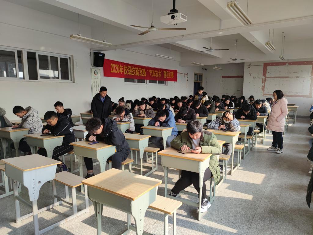 竞赛前期,学院制定了赛项方案及宣传海报,在全校范围内进行了广泛的宣传和动员;12月22日起,2020年度校级“汽车技术”赛项正式拉开帷幕。本次比赛为团体赛,竞赛内容主要包括汽车发动机系统和电气系统的检修,包括初试、复试和实操三个环节。比赛要求既能考查学生的知识自学能力,又能考查学生的动手实践能力。在初试环节,由教师团队提供竞赛题库,涵盖了《汽车构造与维修》《汽车电器设备与维修》《汽车自动变速器》等多门专业基础课程和专业核心课程的内容,要求参赛学生通过查询资料自学、团队互助共学和咨询教师求学的多种渠道,掌握重要知识点,共有285名学生参与了初试(笔试),最终60名同学获得了晋级复试的资格。