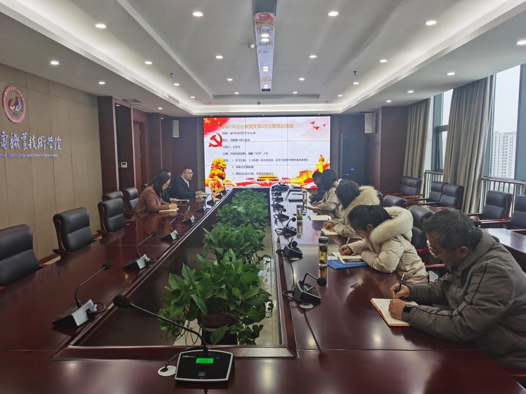 为了深入学习贯彻习近平总书记在党史学习教育动员大会上的重要讲话精神,办公室党支部提前谋划,精心组织,于3月3日下午组织开展了“回首党史征程,扬帆“大写”人生”主题党日活动,支部全体党员参加了本次活动,活动由支部书记王冬冬主持。