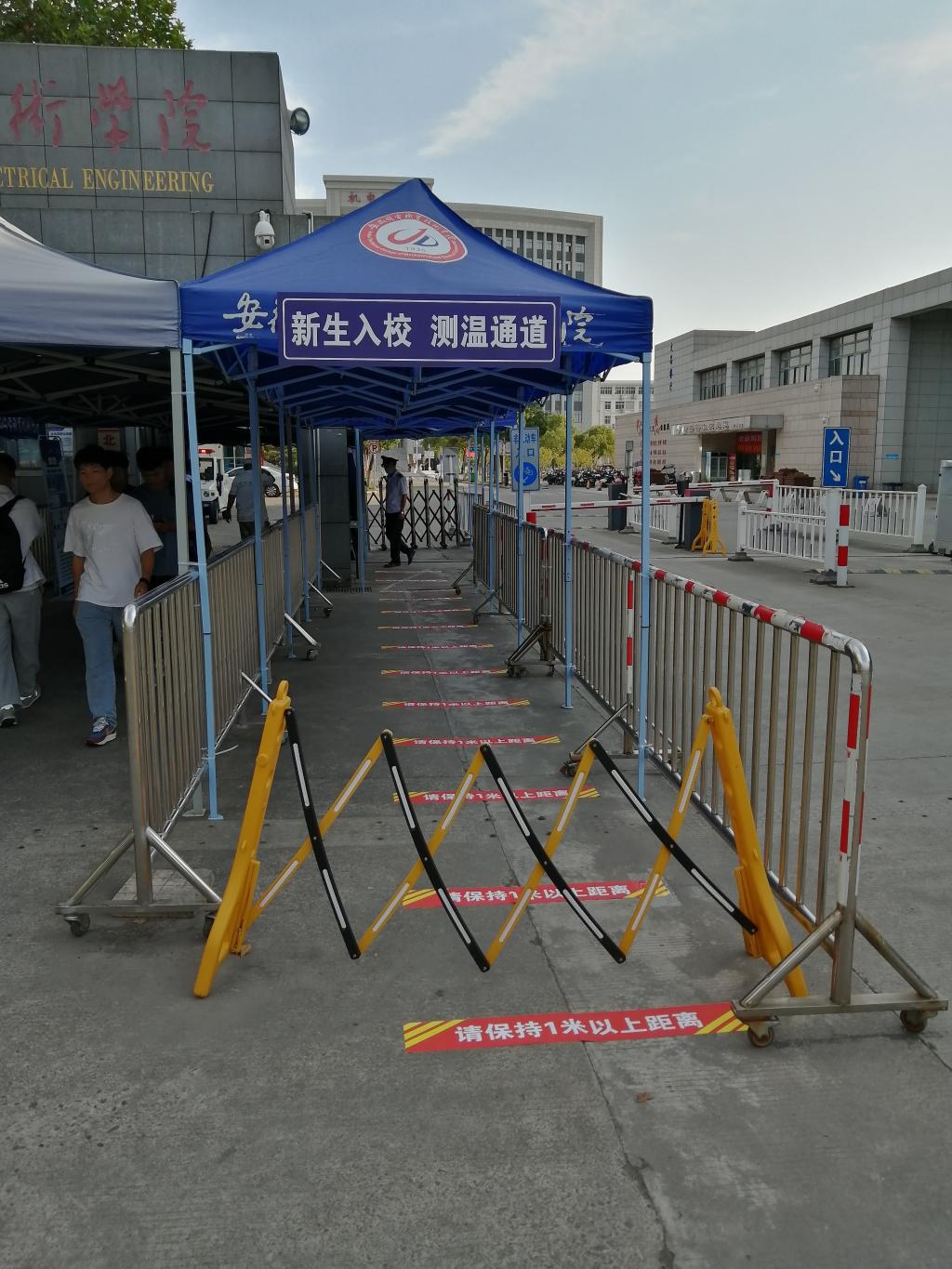 疫情防控,不留死角。根据疫情常态化防控要求,为确保每位新生入校时的体温检测、核酸报告、疫苗接种等符合规定,保卫处设置南北门两处检测通道,分工明确、程序流畅,保证了疫情防控检测与学生进校的顺利进行。