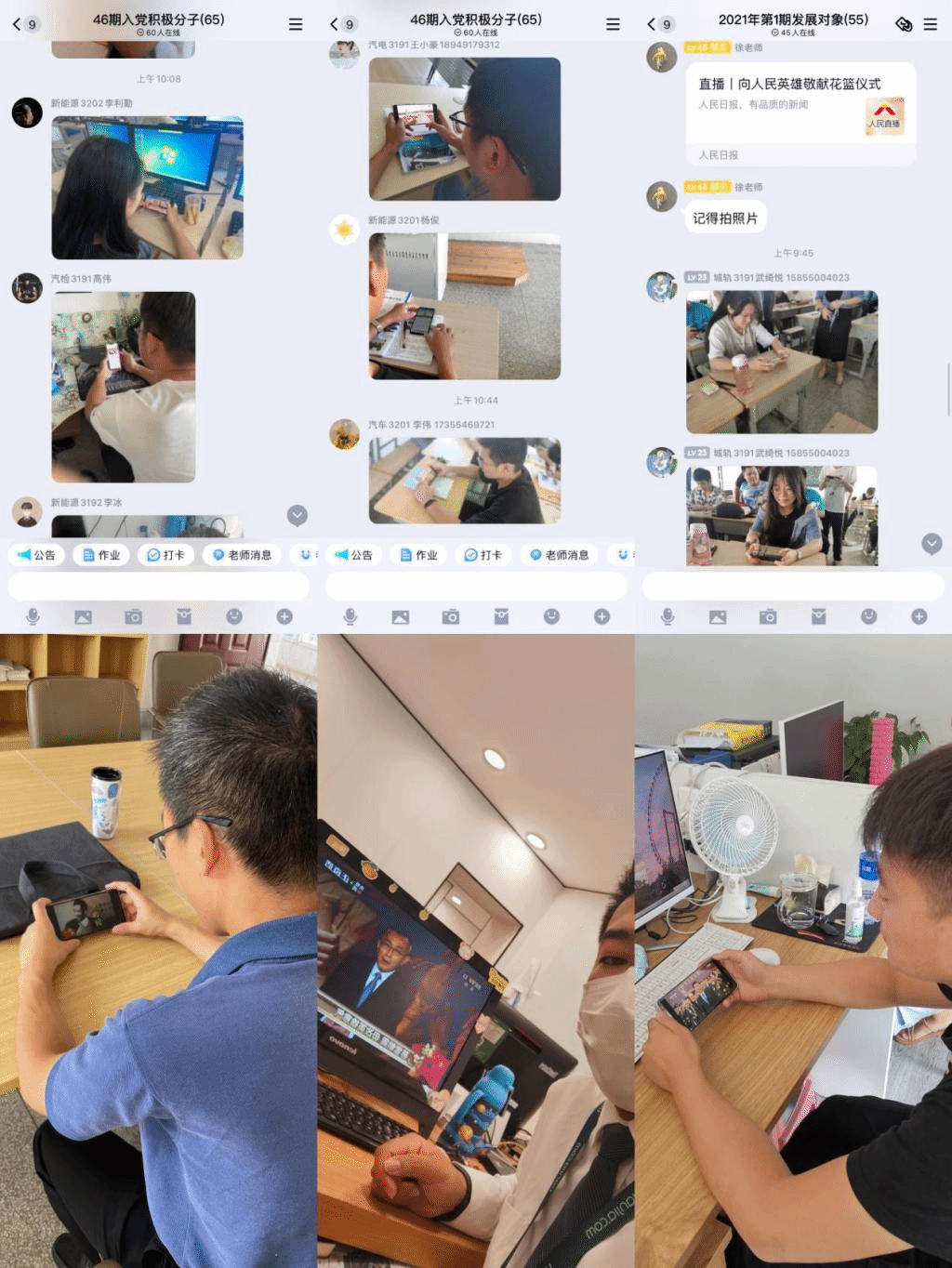 直播结束以后,党支部党员、入党积极分子展开讨论,分享个人观播后体会,大家纷纷感慨当下平安幸福的生活来之不易,是志愿军战士们抛头颅洒热血,牺牲自己的生命换来的;通过直播深切感受到了艰苦奋斗、拼搏奉献、热血报国的精神力量。党支部师生表示要肩负起时代交给我们的责任和使命,为祖国的繁荣富强献上自己的一份力量,让英烈精神一直发扬下去。(发稿:徐亚伟 图片:许永春等 审核:陆荣/赵晓梦)