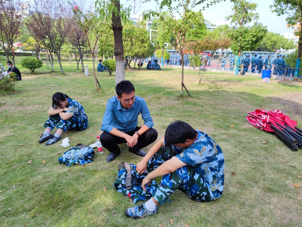 在军训期间,部分新生由于身体原因无法参与军训,个别新生因临时病痛暂停军训等。对于军训场上出现的各种问题,“党员示范岗”的学生党员们主动关心,积极担当,在学院安排的值班老师的指导下按照“定时定点”的形式,采取一系列有效措施完成力所能及的服务、引导、后勤工作。新生辅导员朱敏、戴尧等老师在新生休息期间下场地及时关心问候并为新生们加油打气。第一时间了解问题,第一时间解决问题。