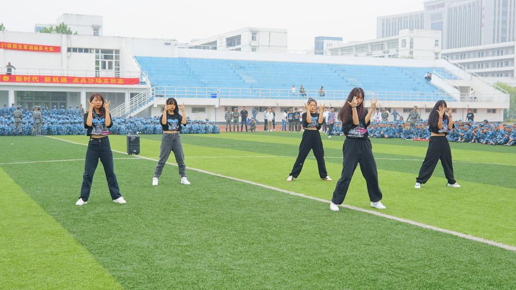 为丰富新生军训生活,展现伟德官网大学生的青春风采与蓬勃活力,10月10日,校团委社团管理中心组织部分学生社团深入军训现场开展2021级新生军训慰问演出活动,演出分别在田径场和篮球场进行。
