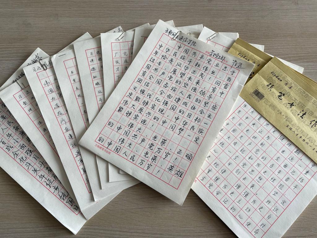 专题学习结束后,在学院党总支的指导下,各党支部分别开展了党史学习教育、师德师风建设党日活动。本次党员活动除全体党员踊跃参加外,在学院工会的积极引导下,也吸引着全体教职工,怀着激动的心情,积极参与到书写“习近平总书记七一重要讲话精神”、“十九届六中全会报告”、“习总书记关于师德师风的重要论述”等内容的硬笔书法活动中,用笔墨歌颂党恩,让文字镌刻记忆;用笔墨回顾历史,让书香润泽心灵,谱写了党史学习教育与师德师风建设“合奏曲”。
