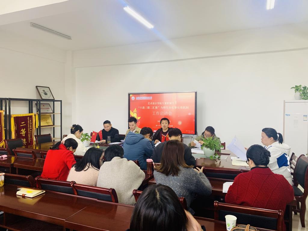为进一步加强党史学习教育,全面贯彻落实习近平新时代中国特色社会主义思想和《高校思想政治工作质量提升工程实施纲要》文件通知,加快艺术设计学院“三全育人”综合改革试点建设工作,提高学生教育管理的针对性、实效性,11月17日下午,学院在201会议室召开了专兼职辅导员“六进三联二汇报”为师生办实事长效机制工作启动会。学院党总支委员、全体专兼职辅导员、教师代表参会,会议由学院党总支副书记樊卫强主持。