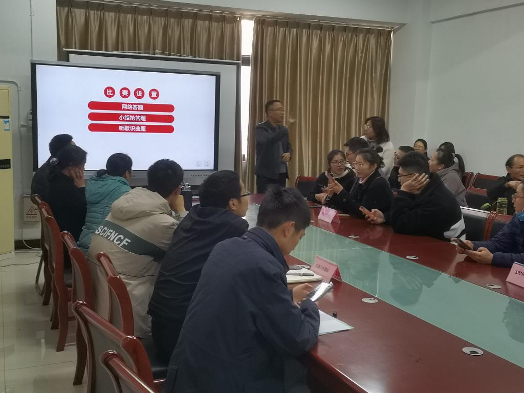 为庆祝建党100周年,重温中国共产党光辉历程,进一步激发我院师生的爱党、爱国、爱岗热情,坚定共产主义理想信念,不断增强工作、学习的责任感和使命感,营造团结和谐、积极向上的工作氛围,11月24日下午,电气工程学院在院7409会议室成功举办了“学党史、知党情、跟党走”建党100周年党史知识竞赛暨红歌竞猜竞唱活动。