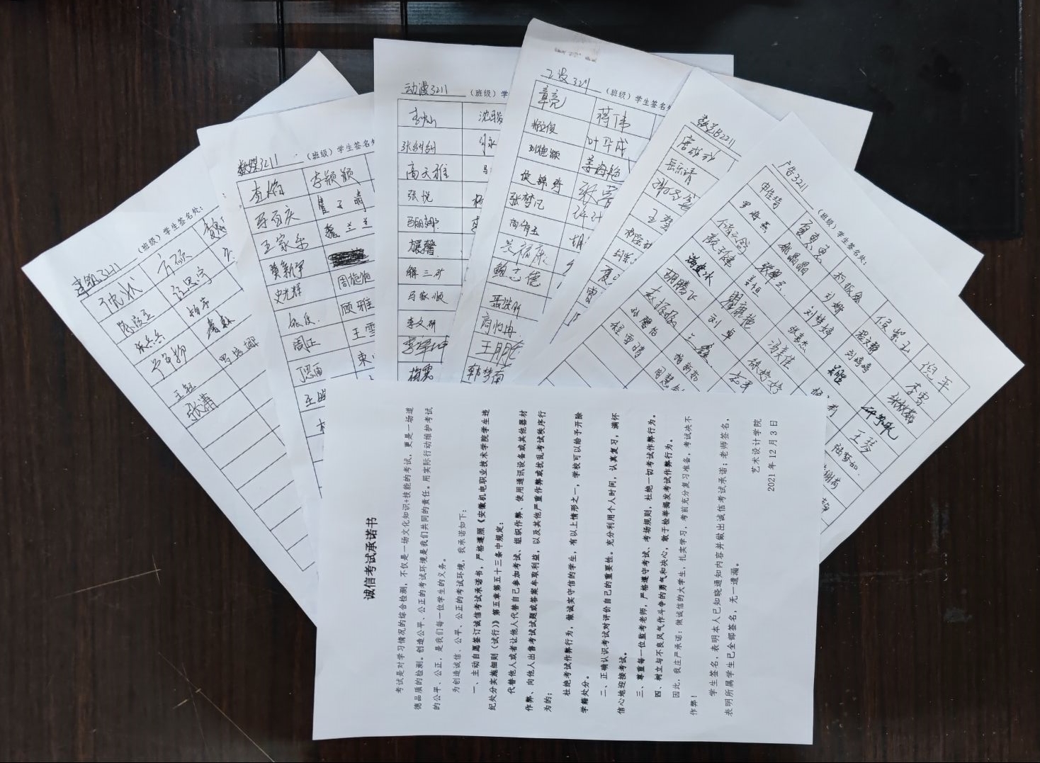 会上,各位辅导员首先详细介绍了学院各专业课的考试形式,指出要根据不同的考试形式进行针对性地备考。并强调要将加强学习作为考试的最终目的,不断巩固基础知识,要把握好晚自习时间,积极复习迎考。接着,各位辅导员进行了考风考纪宣讲,认真组织领学了《伟德国际1946源自英国学生管理规定》针对考试相关制度内容,强调期末考试是对学生入学以来学习成果的一次盘点,也对大家诚信度和意志品质的一次检阅,希望全体学生端正考风,严肃考纪,认真准备,考出好成绩。会议最后,2021级全体同学签订了《诚信考试承诺书》,以诚信展现优良学风。