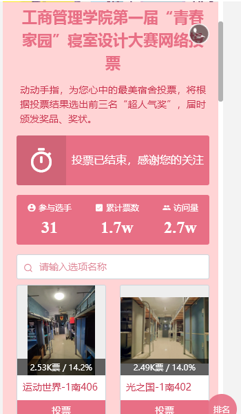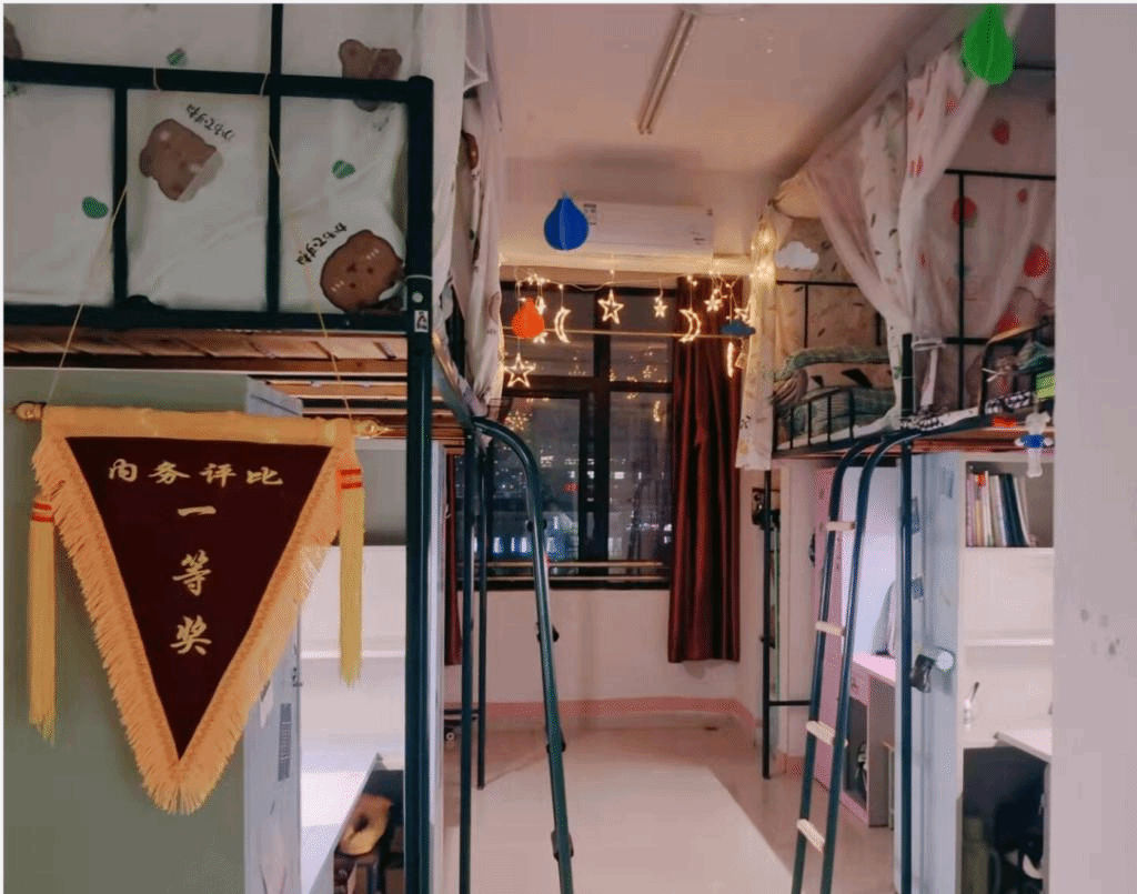 参赛寝室根据大赛主题与要求主要从寝室名、内部装饰、寝室文化氛围、寝室生活需求等角度,充分发挥寝室成员的主观能动性,认真准备,细心布置,展示寝室集体魅力和风采。参赛寝室风格多样,寝室名别具匠心,参赛寝室中有整洁明亮的“学习斋”,也有温馨无比的“阳光小憩”,简约可爱的“好来屋”,还有活力满满的“运动世界”。在寝室设计评选过程中,评委老师还对学生寝室安全用电、消防隐患进行检查规范,引导学生充分了解寝室安全的相关知识。本次寝室设计大赛首次进行网络投票,投票平台开通三天内,累计阅读量近2.7万次,累计投票近1.7万次。