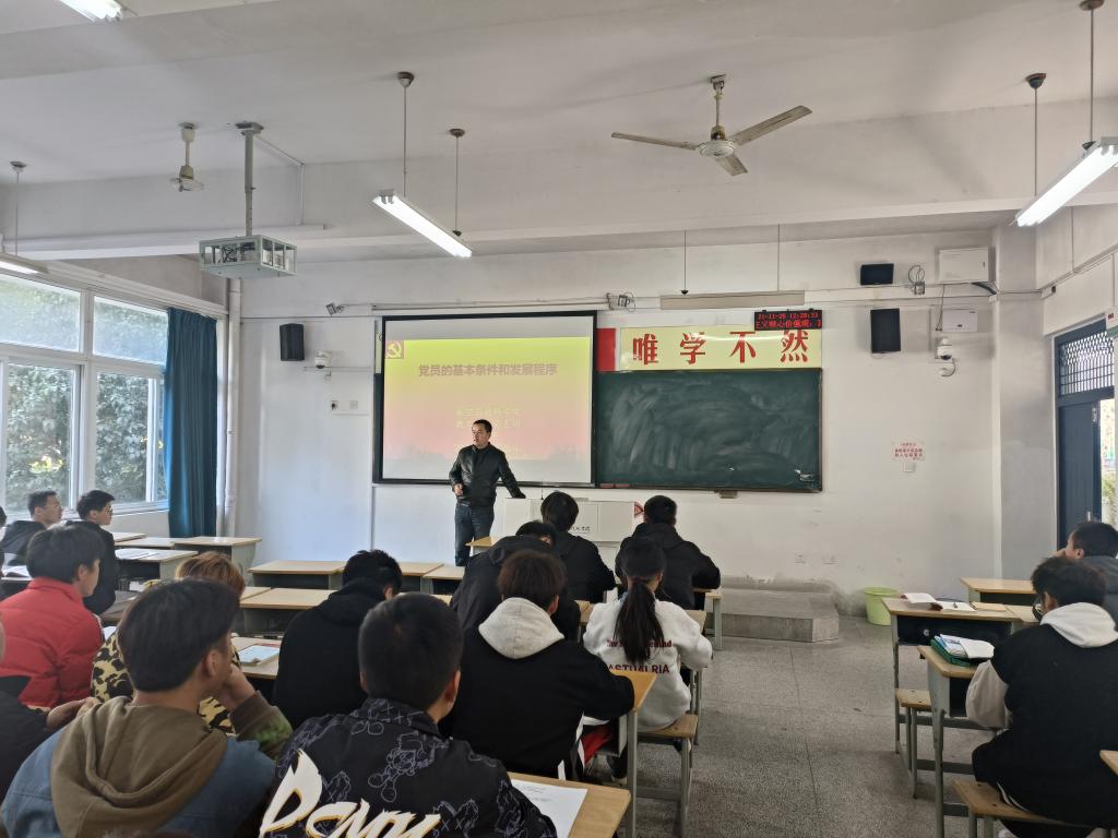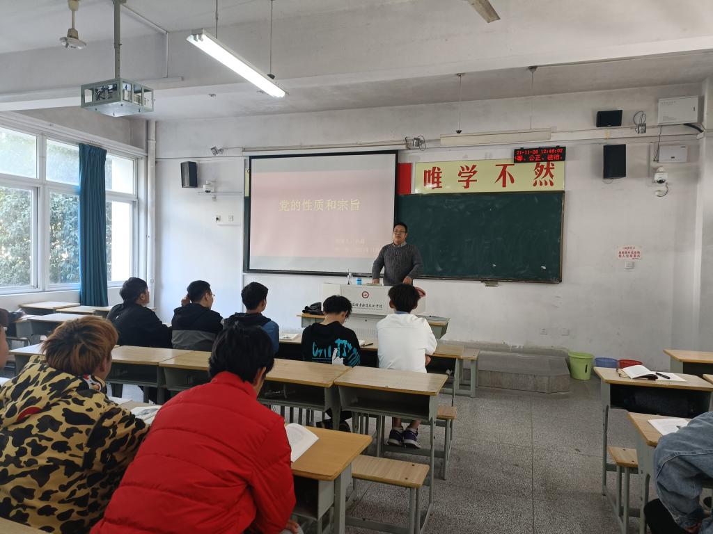 在集中授课环节,学院党总支书记王刚、副书记高立、党总支支委陈庄瑾、学生党支部书记董玥、教工第一党支部书记张帅谋、教工第二党支部书记魏平以及专职辅导员许磊、王力坤等同志,分别以《“请党放心,强国有我”——勇担历史责任共圆中国梦想》《严格标准 规范程序——切实做好发展党员工作》《中国共产党的组织原则、纪律和作风》《十九届六中全会》《中国共产党的指导思想》《党员的基本条件和发展程序》《党的性质和宗旨》《从思想上、行动上争取早日成为合格的共产党员》为专题讲授党课,从百年党史感信思想伟力,深刻理解党的理论、信仰和宗旨,要求学员们坚定信仰信念、牢记宗旨使命、只争朝夕、不负韶华,以奋发有为实际行动,争取早日成为一名光荣的中国共产党党员。为增强学习效果,董玥带领学生分组讨论,院组织员倪漫进行《冰血长津湖》视频教学,从抗美援朝精神中汲取力量。如今的幸福生活来之不易,是一代代中国共产党人风雨兼程,研砺奋进,用血肉之躯为我们拼下来的!在培训班结束之际,全体学员面对党旗庄严宣誓:学习党史,坚定信念;牢记宗旨,勇挑重担;艰苦朴素,勤奋好学;严以律己,争做模范。我们向党旗庄严承诺:请党放心,强国有我!