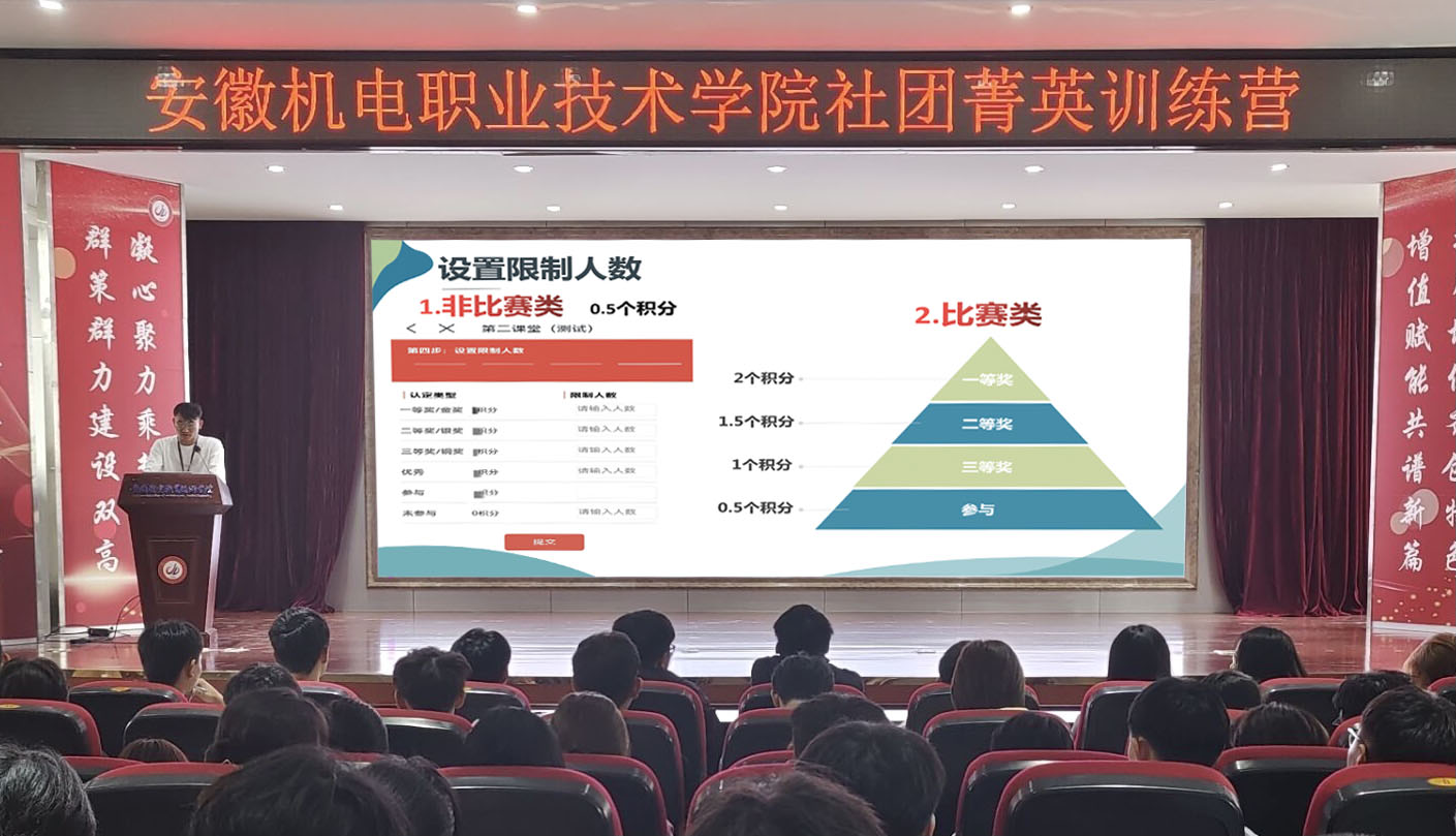 校团委社团管理中心负责人围绕“组织建设、活动开展、会员管理、经费使用、注册登记、年审考核、第二课堂”等方面作了专项培训,着重强调了社团活动的审批流程和注意事项,确保学生社团活动安全规范有序开展。本次社团菁英训练营还组织了部分学生社团骨干参观了第十届中国(芜湖)科博会,开展了“弘扬劳动精神,共建美丽校园”劳动教育实践活动。培训结束后,组织了全体学员参加结业考试。屹峰书画协会会长朱金诚说道:“通过这次培训,我对学生社团骨干的身份有了更加明确的认识,对社团建设的方向有了更清晰的目标。下一步,我将进一步聚焦新要求,不断提升自身能力。”
