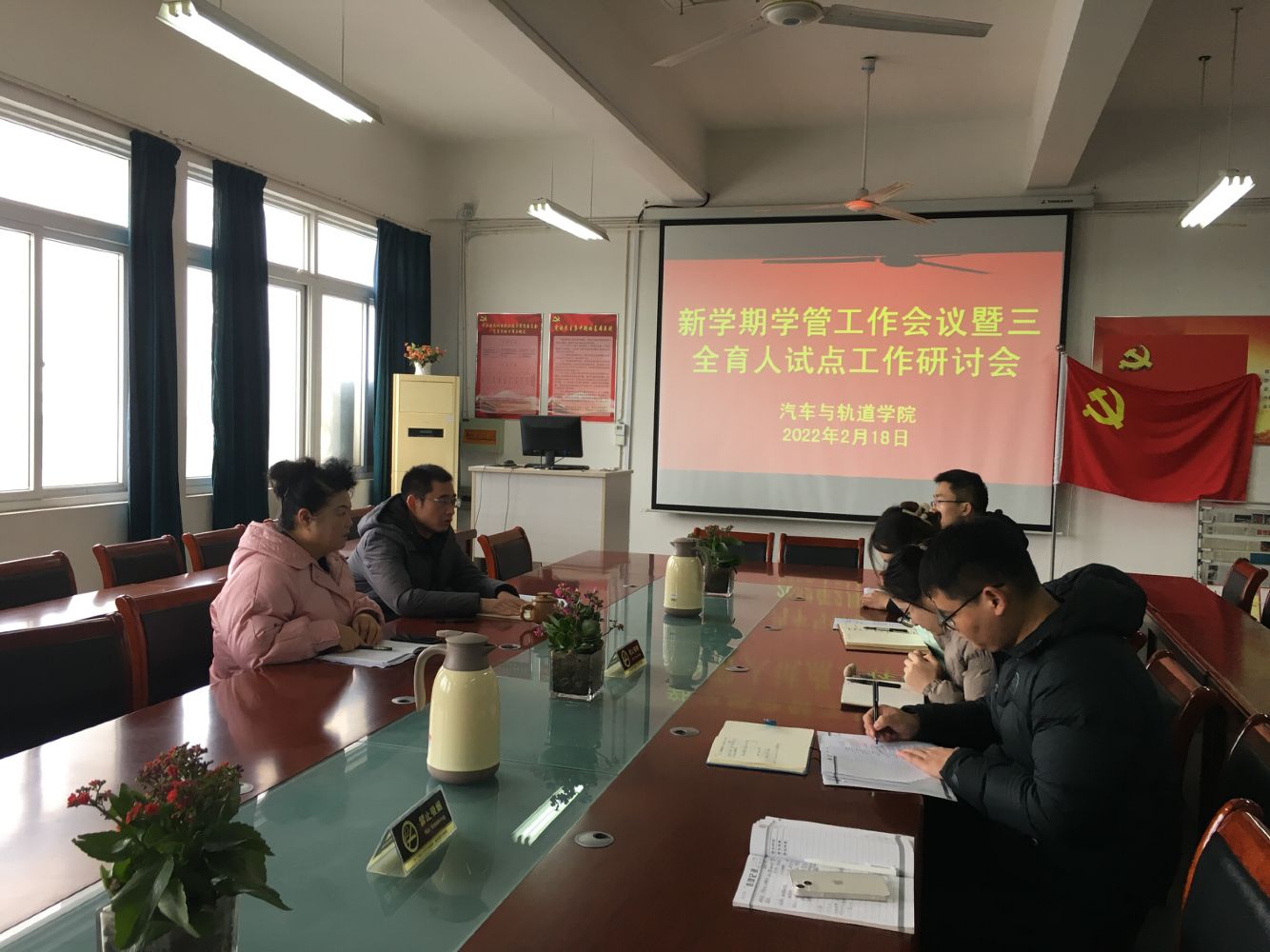 2月18日,汽车与轨道学院在5304会议室召开新学期学管工作会议暨“三全育人”试点工作研讨会。学院党总支书记陆荣、党总支副书记许超、全体专职辅导员参加了会议。