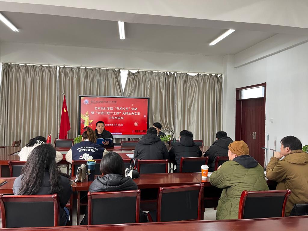 为全面贯彻落实习近平新时代中国特色社会主义思想和党的十九届六中全会精神,加快学院“三全育人”综合改革工作,提高学生教育管理的针对性、实效性,艺术设计学院于2月23日举办“艺术沙龙”活动项目二:辅导员“六进三联二汇报”为师生办实事工作交流会。会议由学院党总支副书记樊卫强主持,分团委书记钱坤、全体专职辅导员参加了此次“艺术沙龙”活动。